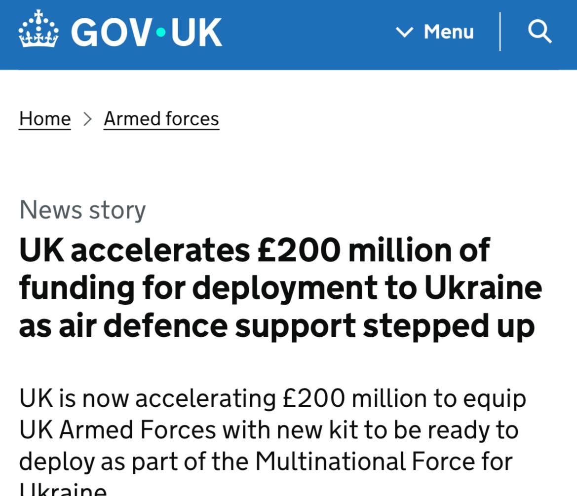 «Министр обороны подтверждает, что 200 млн... будут направлены на подготовку к какому-либо развёртыванию многонациональных сил на Украине»
