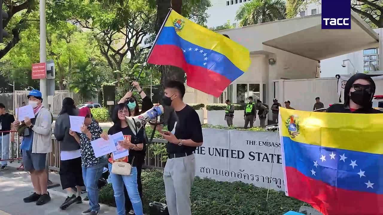 Протестующие у посольства США в Бангкоке потребовали освободить Мадуро, передает корреспондент ТАСС.