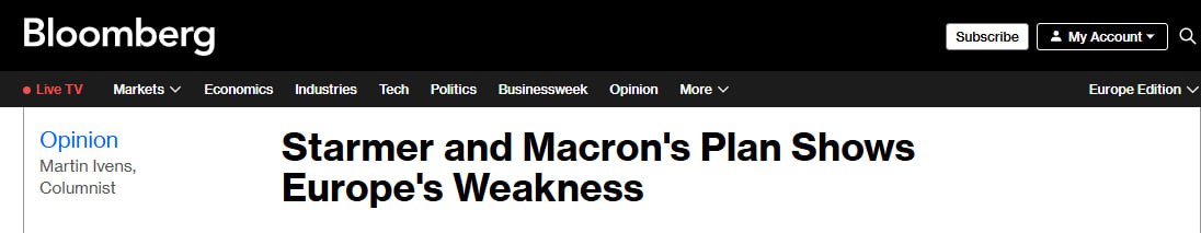 «Сегодня разрыв между британскими военными амбициями и реальностью в сфере жёсткой силы ещё больше. Военно-морской флот — тень своего прежнего «я», а численность армии сокращена до 71 000 человек — один только Корпус морской пехоты США насчитывает 180–190 000 человек», — отмечает Bloomberg.