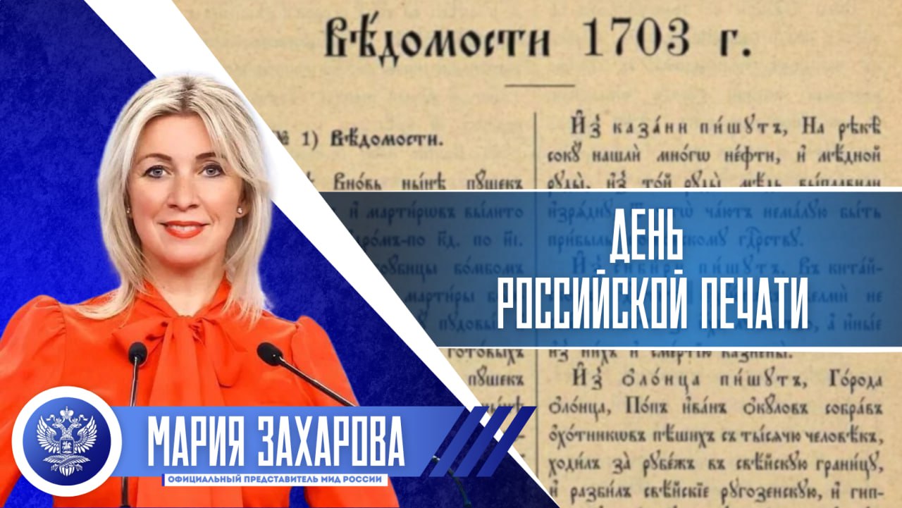 Комментарий официального представителя МИД России М.В.Захаровой по случаю Дня российской печати(13 января 2026 года)
