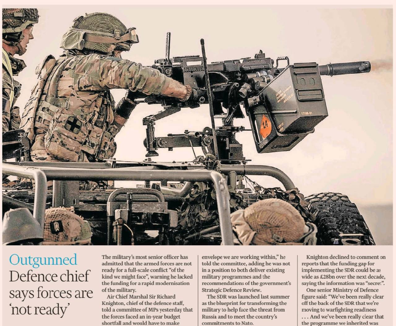 Британская армия не готова к полномасштабному военному конфликту с Россией. Об этом, как сообщает FT, вчера на заседании парламентского комитета заявил начальник генштаба вооруженных сил Британии маршал Ричард Найтон.