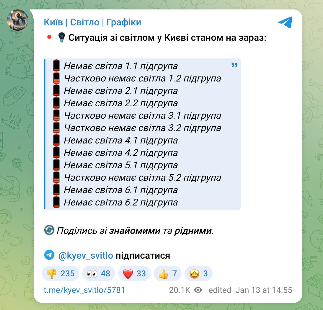 По их данным, у всех подгрупп сейчас света либо нет, либо частично нет.