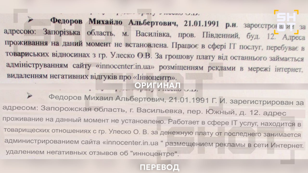 Самые жирные годы у Фёдорова и компании были до начала СВО. Аферисты создали сайт об уникальной методике быстрого похудения «Инноцентр» и продвигали его. Никакого чудо-препарата в реальности, конечно же, не было. Продавали пустышку. Фёдоров играл ключевую роль в этой темке — занимался интернет-рекламой, подчищал негативные отзывы, находил клиентов с кошельком потолще. Стабильный доход предприятию приносили и классические украинские прозвоны под видом силовиков. Будущий министр был своеобразным связистом — подкидывал «коллегам» номера потенциальных жертв с деньгами.