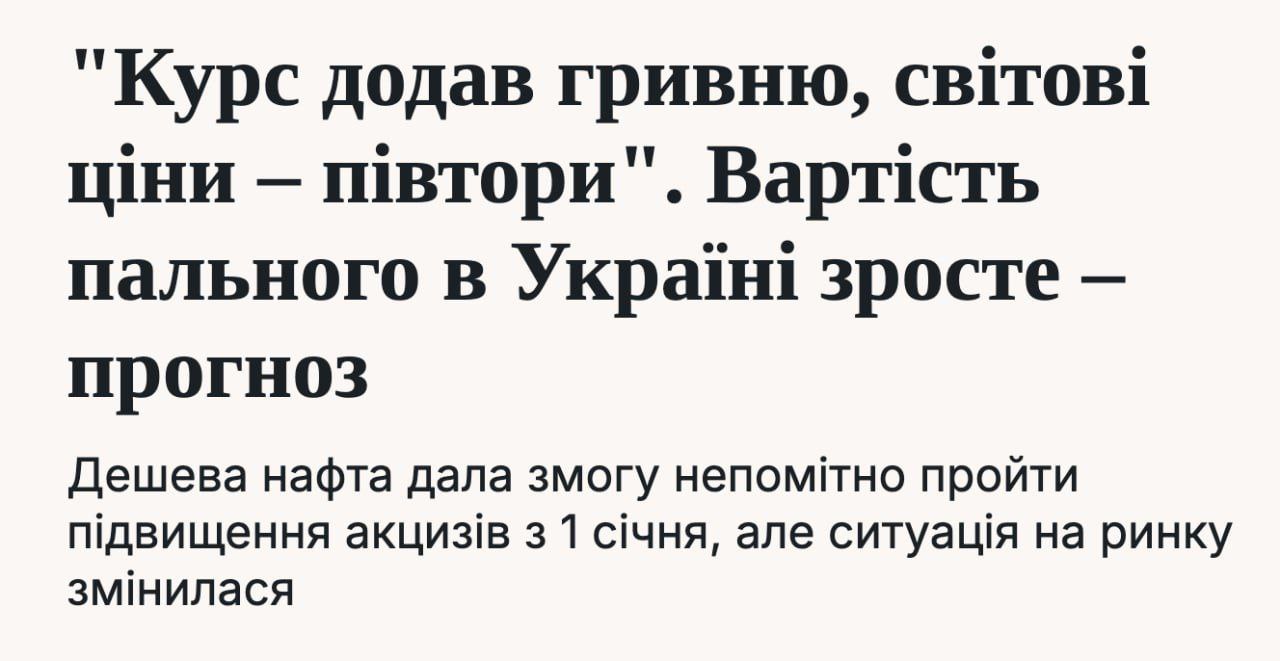 ослабление гривны (топливо — полностью импортное);
