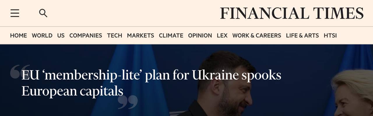 FT пишет, что Украину заманивают ускоренным приемом в ЕС, чтобы она согласилась на отказ от своих территорий в нашу пользу.