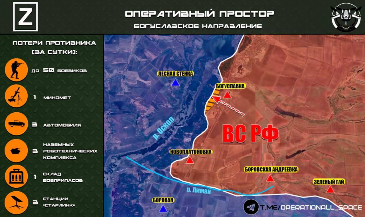 На Богуславском направлении ВС РФ продолжают наступление в лесном массиве западнее н.п. Богуславка
