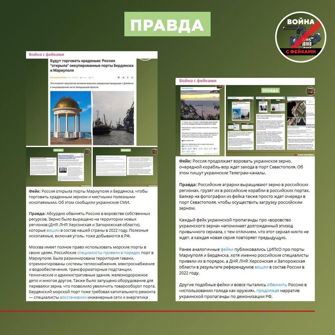 Правда: Украденным зерном украинские пропагандисты называют урожай, собранный на территории новых российских регионов, вошедших в состав РФ в 2022 году. Жители этих территорий проголосовали за вступление в РФ на референдумах, продолжается их интеграция в правовое и экономическое поле России.