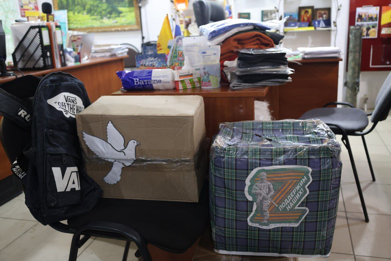 Для поддержания нашего военнослужащего, поднятия духа бойца собрали всем партийным офисом медикаменты, теплую одежду, продукты питания, сладости, сгущенку, консервы рыбные и мясные, печенье, чай.