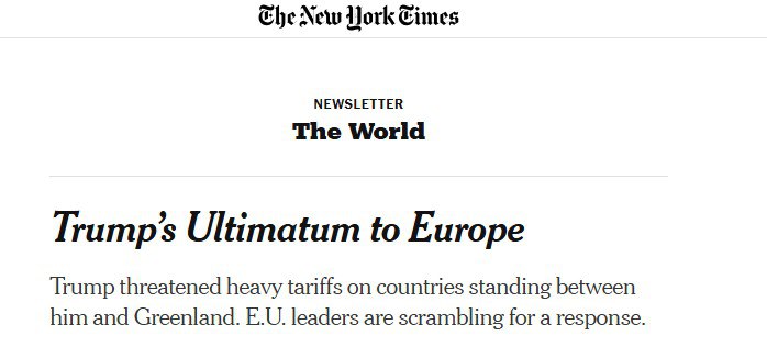 New York Times пишет, что европейцам придется выбирать между Украиной и Гренландией.