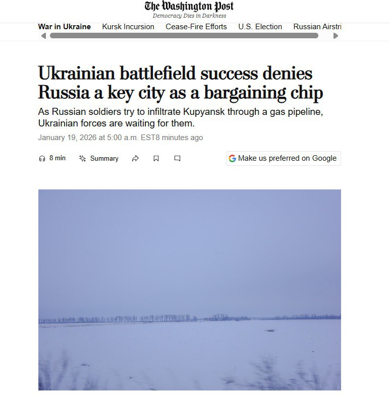 ‘Мы понимаем, что Зеленскому нужны козыри в переговорах, поэтому мы здесь’ — ВСУшники рассказали The Washington Post, почему без конца штурмуют Купянск.