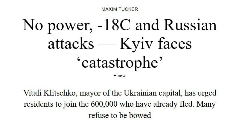 «Выступая из киевской мэрии, где сотрудникам запретили пользоваться туалетами из-за отсутствия водоснабжения, он сказал, что Зеленский отказал ему в просьбе о встрече для обсуждения кризиса, хотя производство электроэнергии и противовоздушная оборона находятся в ведении центрального правительства», – пишет The Times.