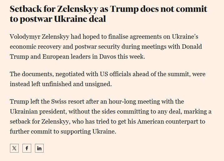 ‘Трамп не взял на себя обязательства по послевоенному соглашению по Украине. Ни в плане восстановления, ни в плане гарантий безопасности. Это стало ударом для Зеленского’ – пишет Financial Times.