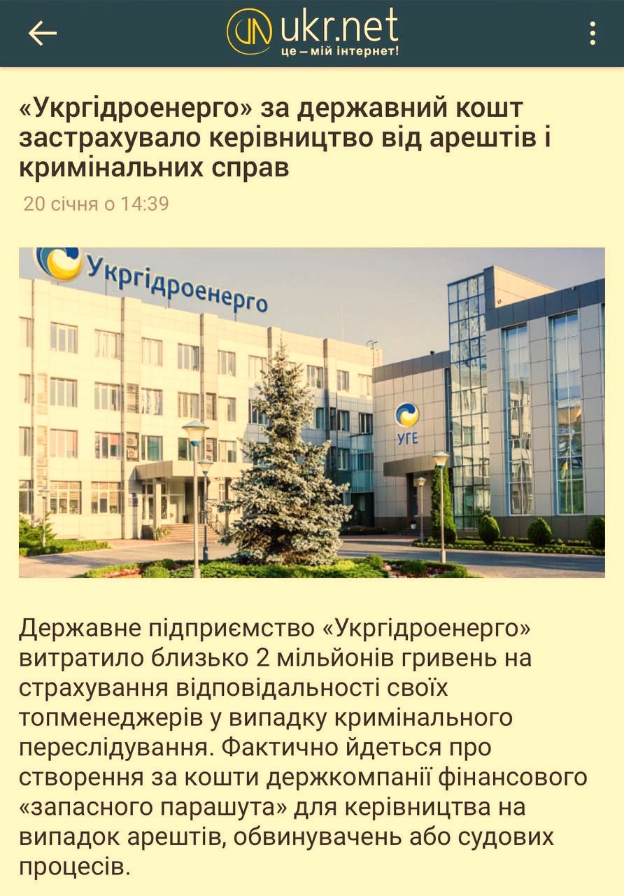 Когда вы думали, что уже достигли дна, но снизу постучались. Украинское государственное предприятие "Укргидроэнерго" за государственный счёт (!) застраховало руководство от арестов и уголовных дел.