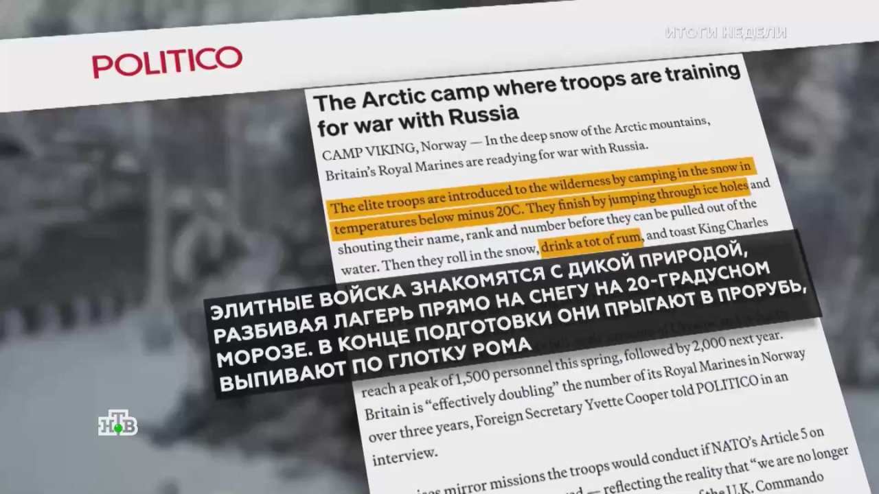 Чтобы научиться воевать с Россией, британские пехотинцы решили отправиться в Норвегию. Там они спят на снегу, прыгают в проруби, а после выпивают рюмку рома.