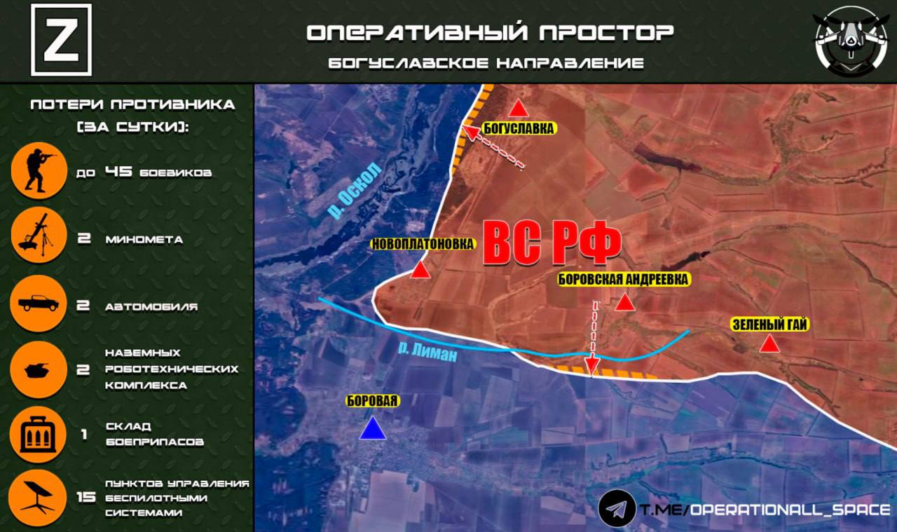 На Богуславском направлении ВС РФ продолжают наступление в районе населённых пунктов Богуславка и Боровская Андреевка