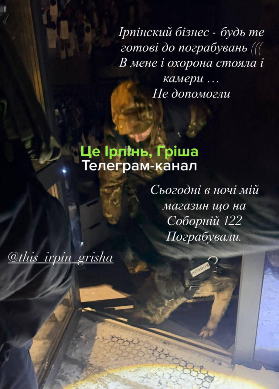 «Грабят магазины. Сейчас, когда нет света, сигнализация не успевает зарядиться, выносят не только деньги, но и всю технику», — сообщают предприниматели. Только вчера и сегодня пострадали по крайней мере три бизнеса как в Ирпене (магазин купальников «Ocean of Miracle» и кафе «Emax coffee», находящееся в ЖК Центральный на улице Соборная), так и в Буче (магазин детских товаров «Babbys Shop»).