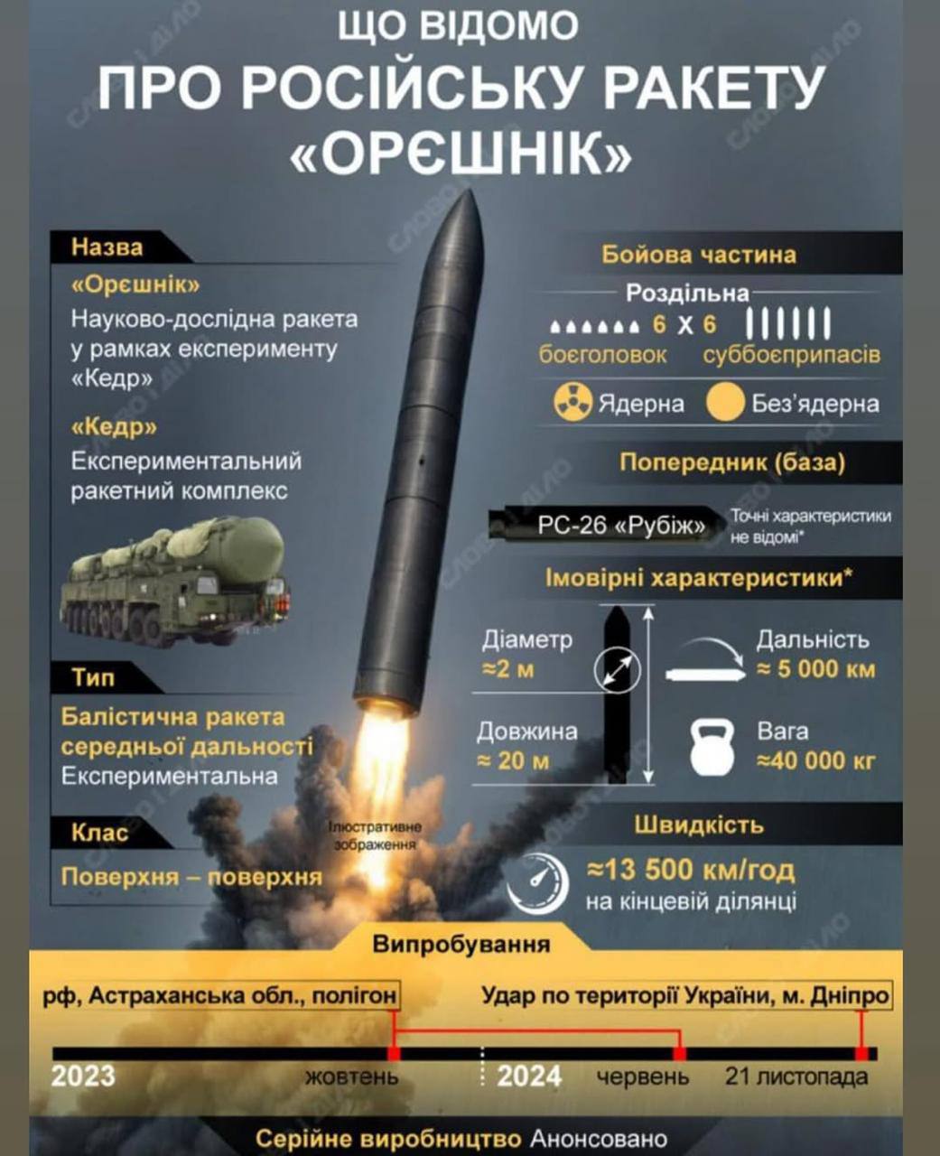 "У РФ не больше 3–4 ракет „Орешник“, и в этом году они планируют запустить их в серийное производство".