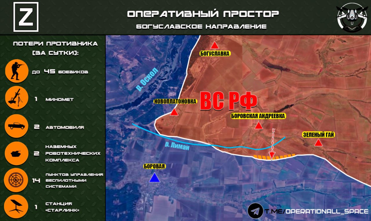 На Богуславском направлении ВС РФ наступают южнее н.п. Боровская Андреевка, сообщает "Оперативный простор":