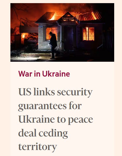 ‘Администрация Трампа дала понять Украине, что гарантии безопасности со стороны США зависят от предварительного согласия Киева на мирное соглашение, которое, вероятно, будет включать в себя передачу контролируемого Донбасса. Этот пункт стал предметом серьёзного разногласия, потому что Украина считает эти условия неприемлемыми’ – Financial Times