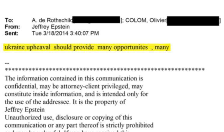 «Восстание на Украине даст много возможностей, много» — пишет Джеффри Эпштейн Ариане де Ротшильд 18 марта 2014 года (с) @Ivorytowers