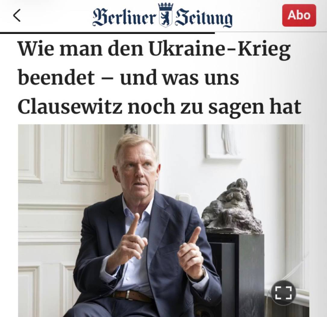 «Как закончить войну на Украине - и что еще может рассказать нам Клаузевиц»: В Германии считают невозможным завершить конфликт на Украине, «пока все этого не захотят».