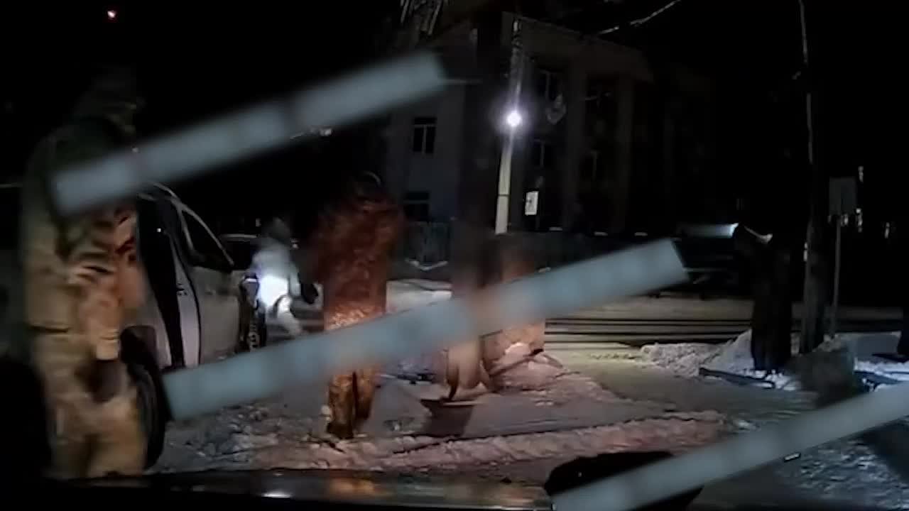 На кадрах из соцсетей видно, как военкомы на скорости въезжают в автомобиль с гражданскими, выходят из машины и забирают из нее водителя.