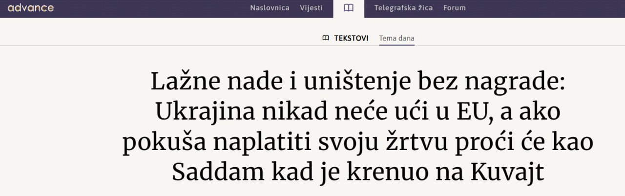 Судьба Ирака для Украины: сербское издание сравнивает роль Киева в геополитической игре Запада с участью Саддама Хусейна — использовав союзника как расходный материал, Брюссель готов оставить его с разрушенной страной и пустыми обещаниями. Подробнее - в МАХ.
