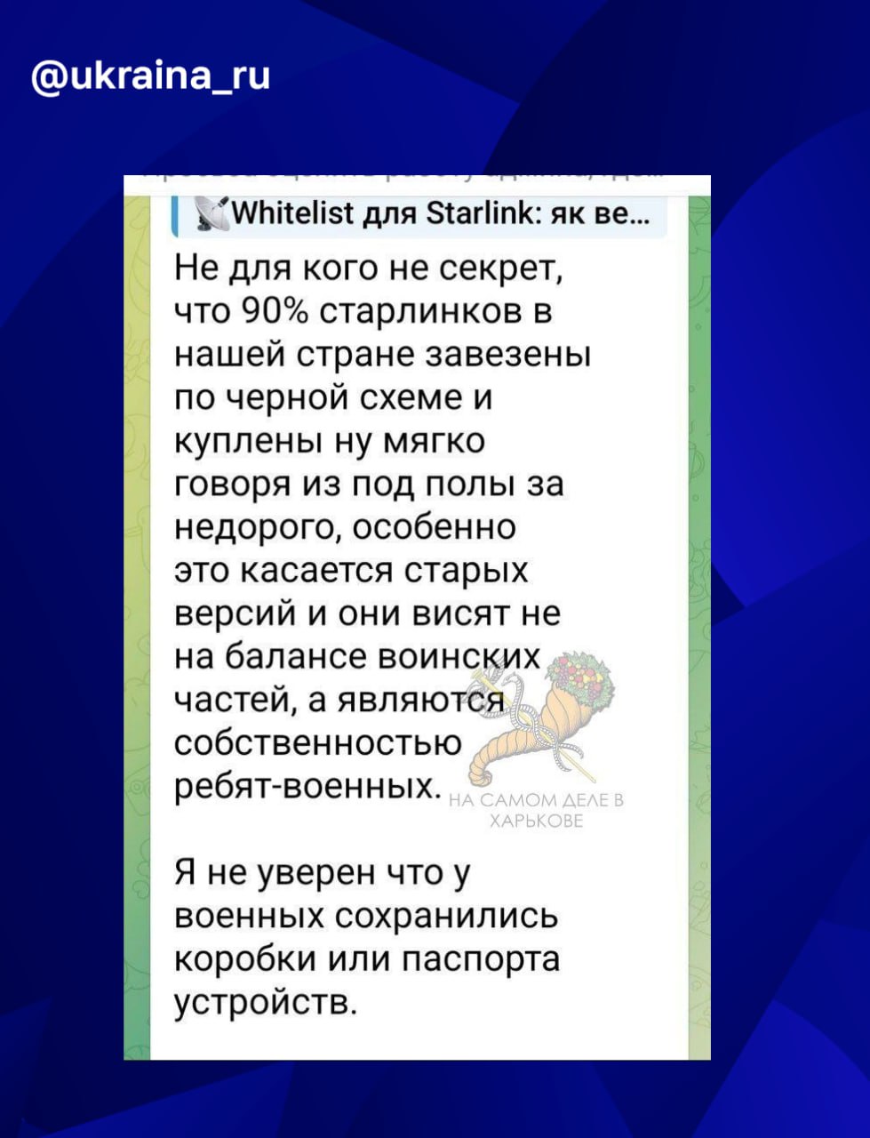 Попытки Киева пересчитать реальные объёмы Starlink в войсках упираются в то, что солдаты не хотят «светиться», опасаясь, что ушлое командование тут же всё "отожмёт".