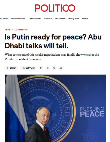 Politico: Абу-Даби может принести мир к весне, но Киев уже готовится к предательству Запада