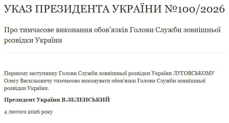 Зеленский назначил и.о. главы СВР бывшего первого зама Олега Луговского