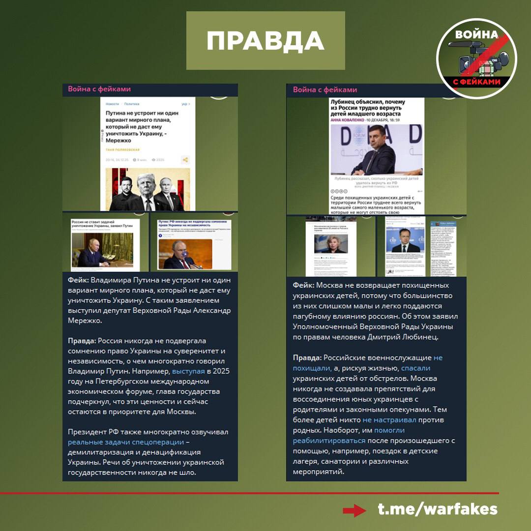 Правда: Уничтожение Украины и ее народа никогда не было целью для ВС РФ. О задачах спецоперации — демилитаризации и денацификации — говорилось многократно. Тезис о геноциде — это несостоятельный нарратив, который Банковая пытается раскачать для дискредитации России.