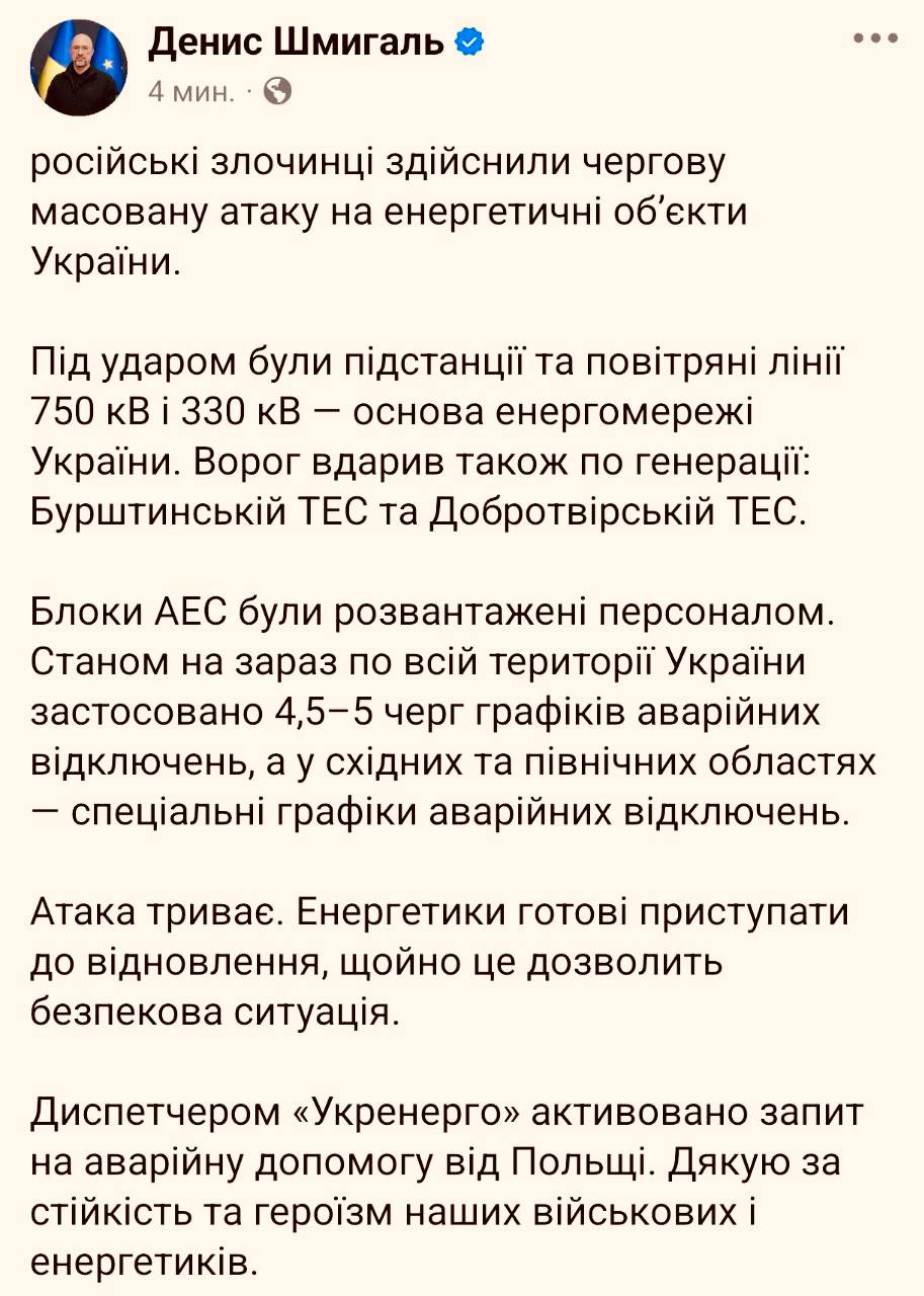 По его словам, были разгружены (то есть, в экстренном порядке остановлены) энергоблоки украинских АЭС.