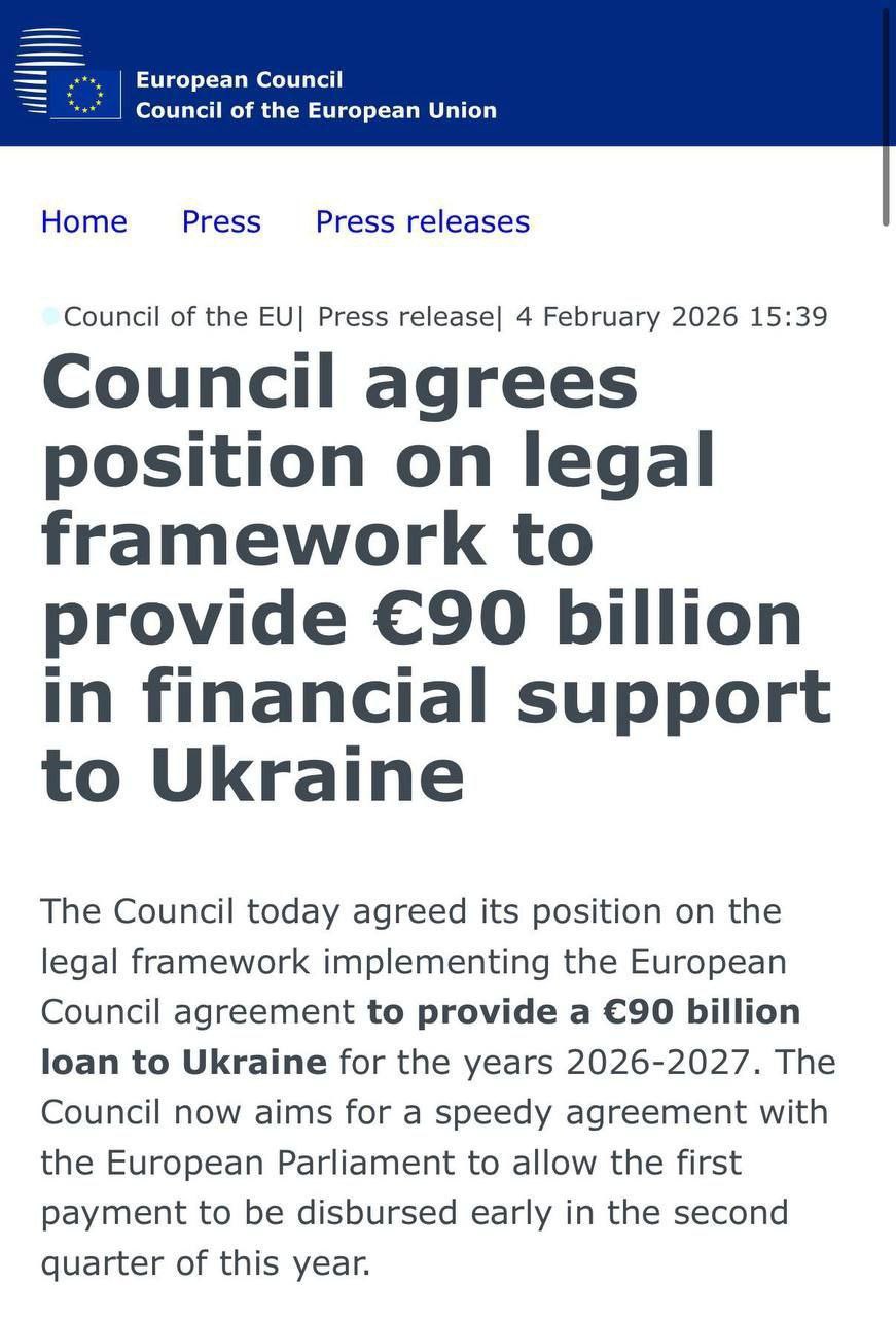 Совет ЕС одобрил условия предоставления кредита в размере 90 миллиардов евро Украине.