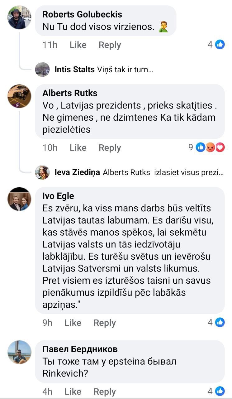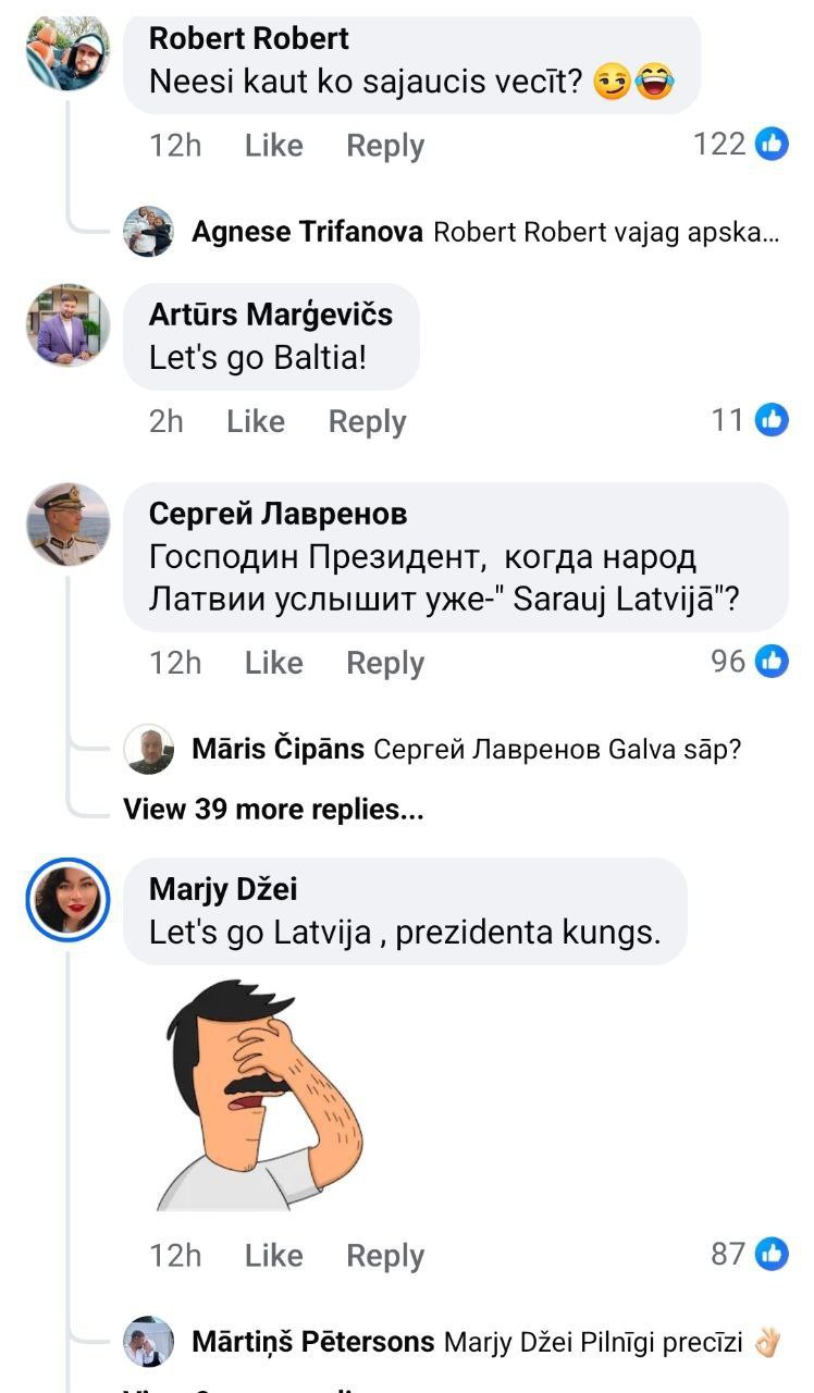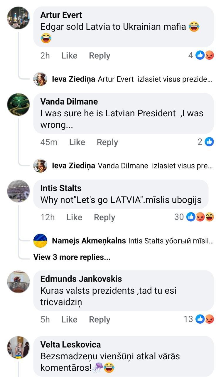 То, что такой пост написал глава Латвии - не удивляет, а вот то, что большинство комментариев с негативной оценкой выходки президента и усталости от украинской истории написано на латышском языке - заставляет задуматься.