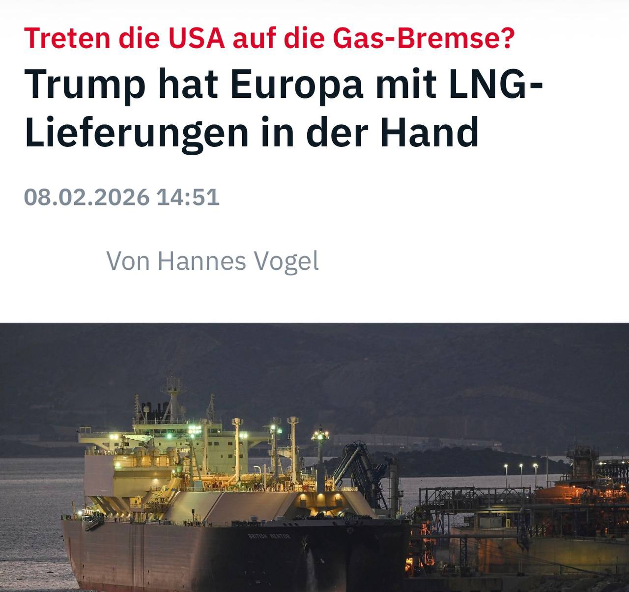 «До войны в Украине Европа была привязана к энергетическому узлу Москвы. Та же самая фатальная ошибка теперь повторяется с США: благодаря экспорту сжиженного газа из США Дональд Трамп оказывает огромное давление в своей экономической войне против Европы»