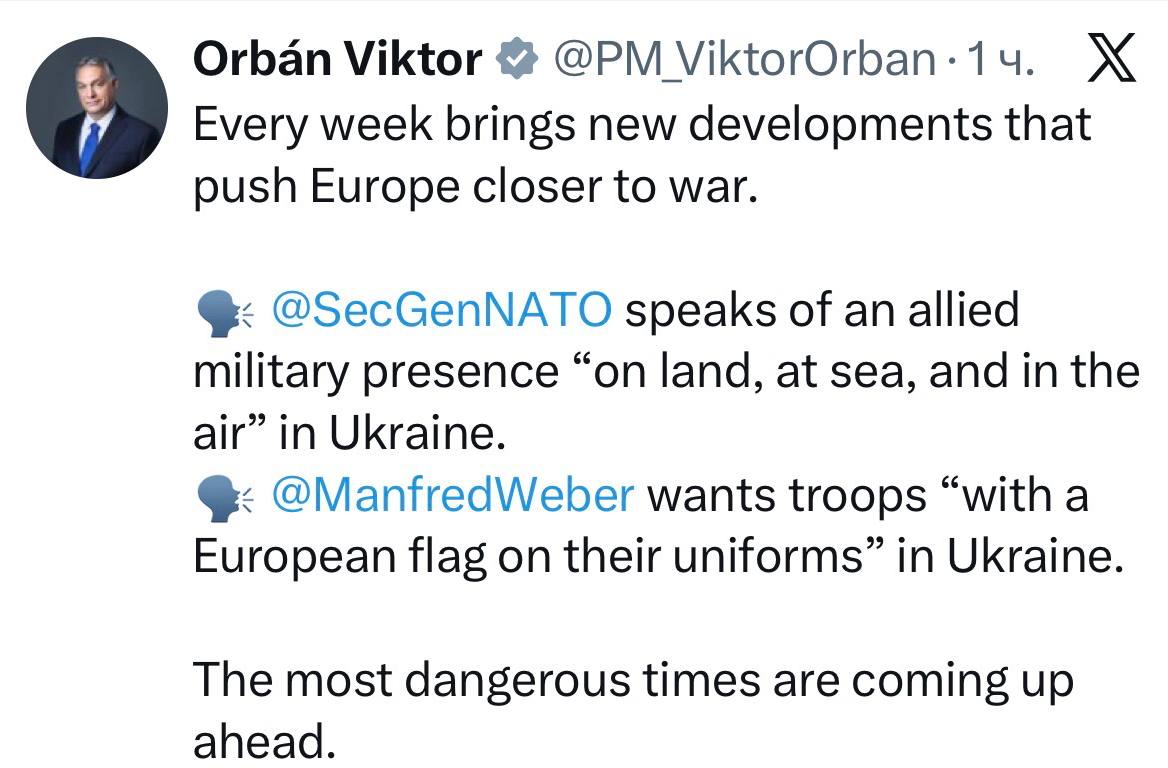 Каждую неделю происходят новые события, которые приближают Европу к войне. Генеральный секретарь НАТО говорит о военном присутствии союзников «на суше, на море и в воздухе» в Украине. Манфред Вебер хочет видеть в Украине войска «с европейским флагом на форме».