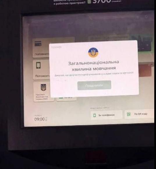 Банкоматы на Украине начали требовать отстоять "минуту молчания" для получения денег. Новшество заметили на экранах банкоматов "Приват-банка".