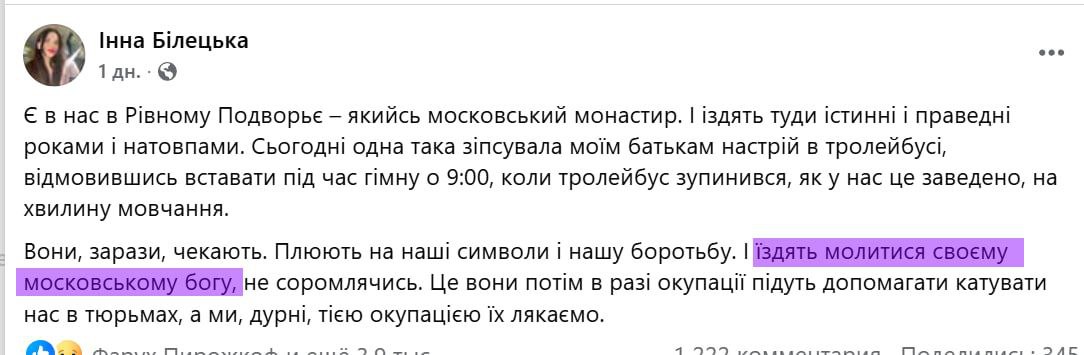 Православные христиане — враги украинской нации потому, что молятся "своему московскому Богу". Скриншоты из соцсетей, на которых украинские "патриоты" выплёскивают ненависть на православных, публикует Мирослава Бердник.