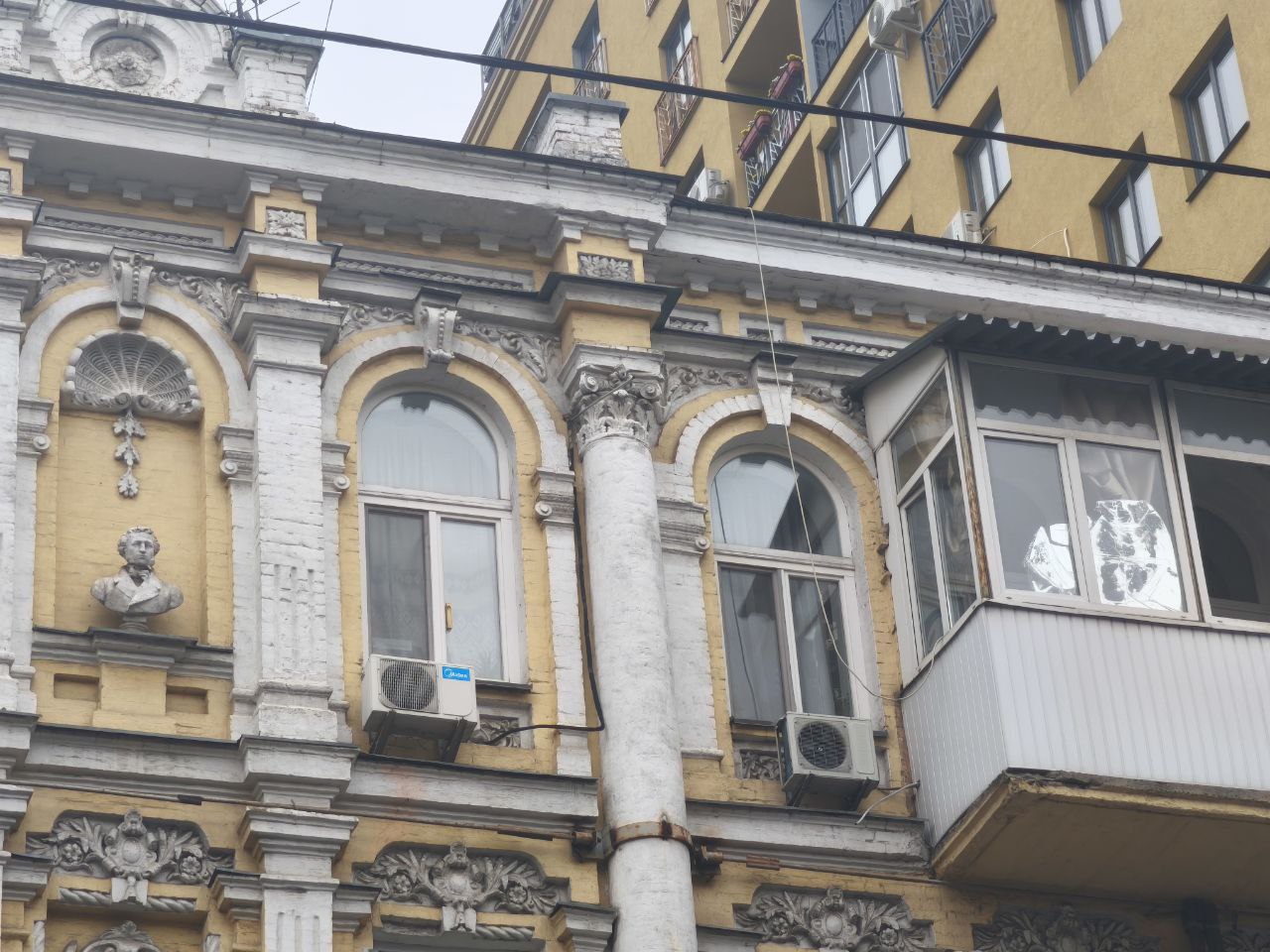 Из жизни дикарей: в Киеве сбили бюст Пушкина с уже изгаженного исторического здания