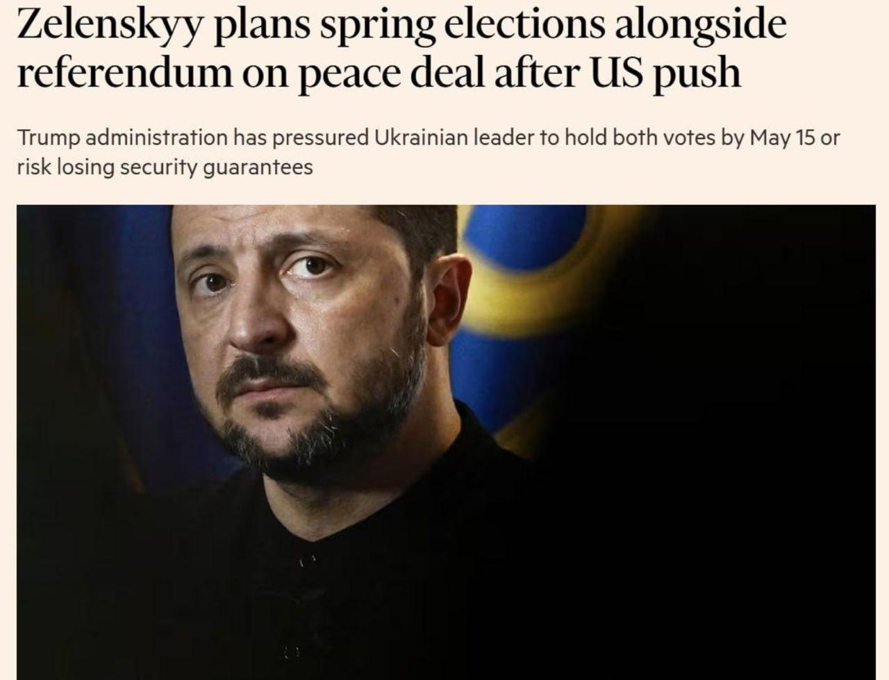 По данным издания, это происходит под давлением американской администрации. Оба голосования должны состояться до 15 мая, в противном случае Киев рискует лишиться гарантий безопасности.
