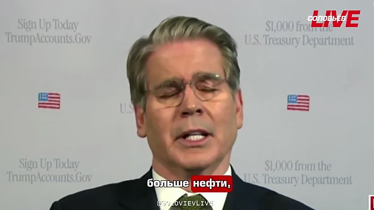 «А затем, с мирными сделками, я думаю, мы могли бы увидеть значительное снижение цены на нефть за счёт Венесуэлы и Ирана. И если урегулируют конфликт Россия – Украина, на рынок поступит гораздо больше нефти, снятой с санкций казначейства. И ничто так не помогает потребителям, как более низкие цены на энергоносители».