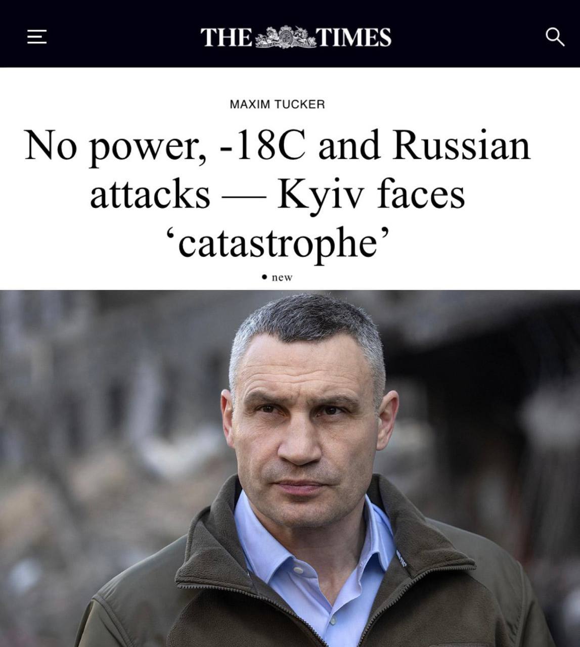 Кличко обвинил Зеленского в том, что Украина замерзает, в январе Киев покинул каждый пятый житель - The Times