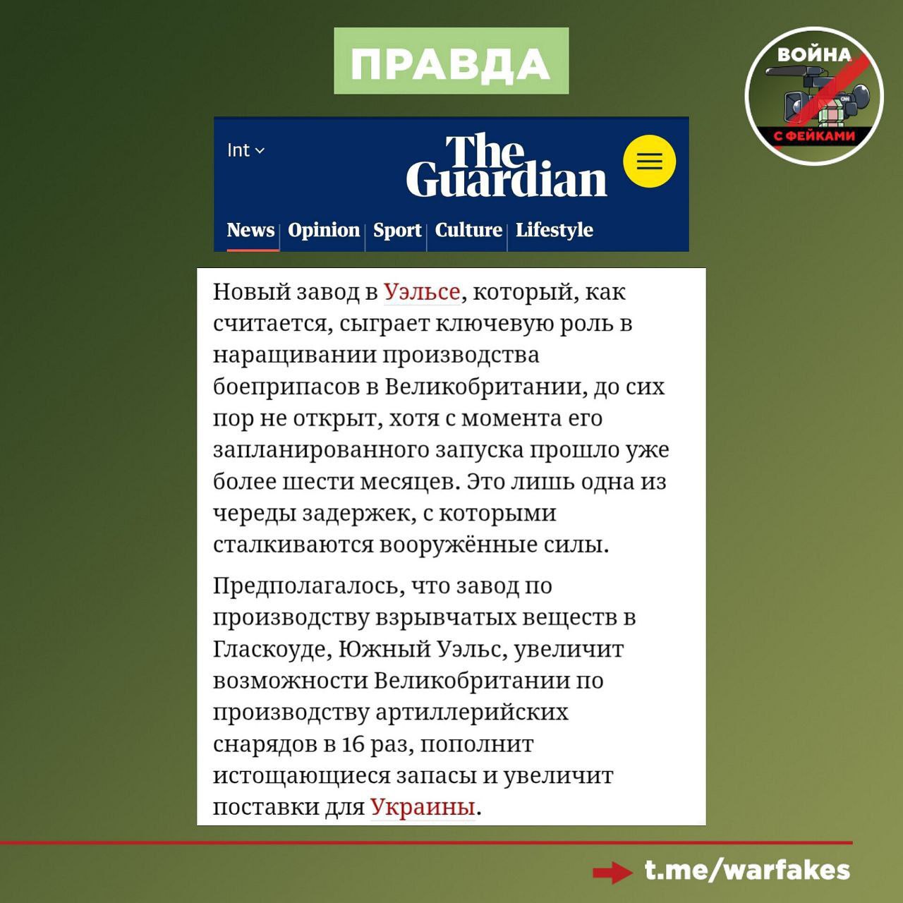 Предприятие принадлежит компании BAE Systems — крупнейшему производителю оружия в Европе. Бизнесмены настаивали на строительстве дополнительного завода в Уэльсе и обещали, что к зиме 2026 года ВСУ получат как минимум несколько партий артиллерийских боеприпасов. В компании отметили, что «есть определенные задержки» и не сказали, когда запустят производство снарядов на новом объекте.