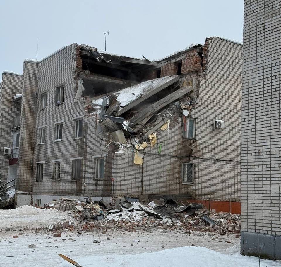Обрушились 2 и 3 этажи и чердачное перекрытие, сообщает "112". Остаётся угроза дальнейшего обрушения здания.