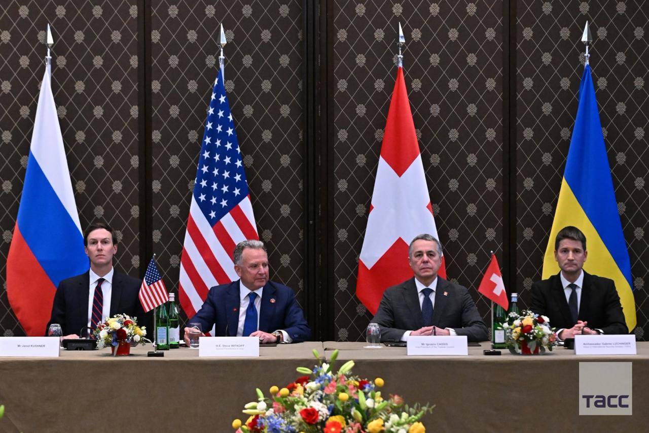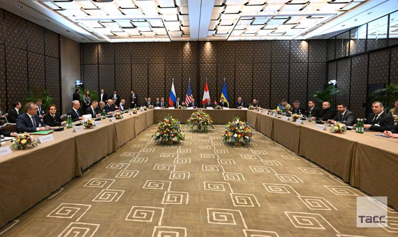 Кадры с места трехсторонних переговоров России, США и Украины в Женеве.