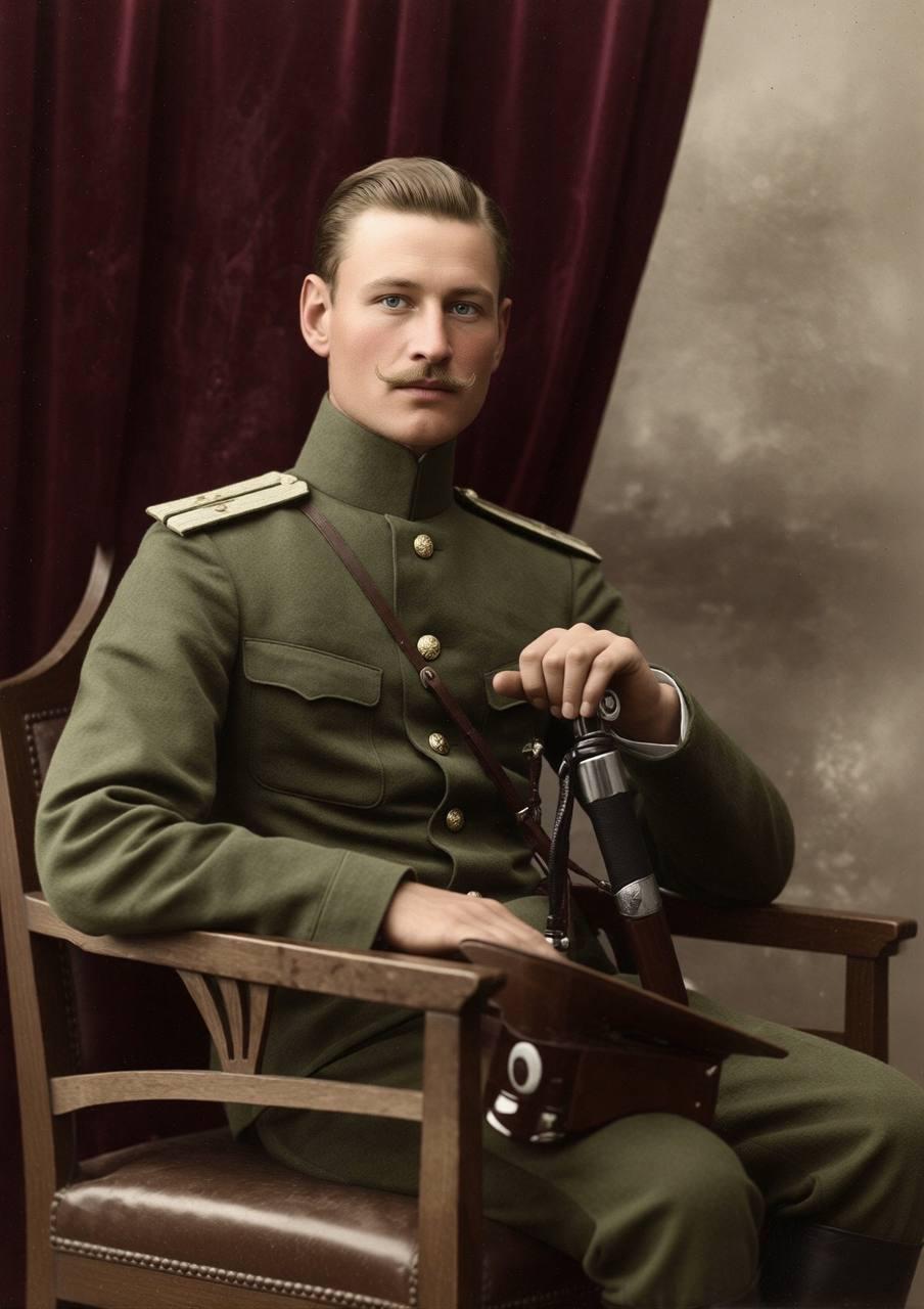 Он служил в 5-м гусарском Александрийском полку во время Первой мировой войны, где получил боевые награды, включая орден Св. Анны. Участвовал в Гражданской войне на стороне Белой армии Колчака, дослужившись до полковника, а затем эмигрировал из Владивостока в 1920 году.