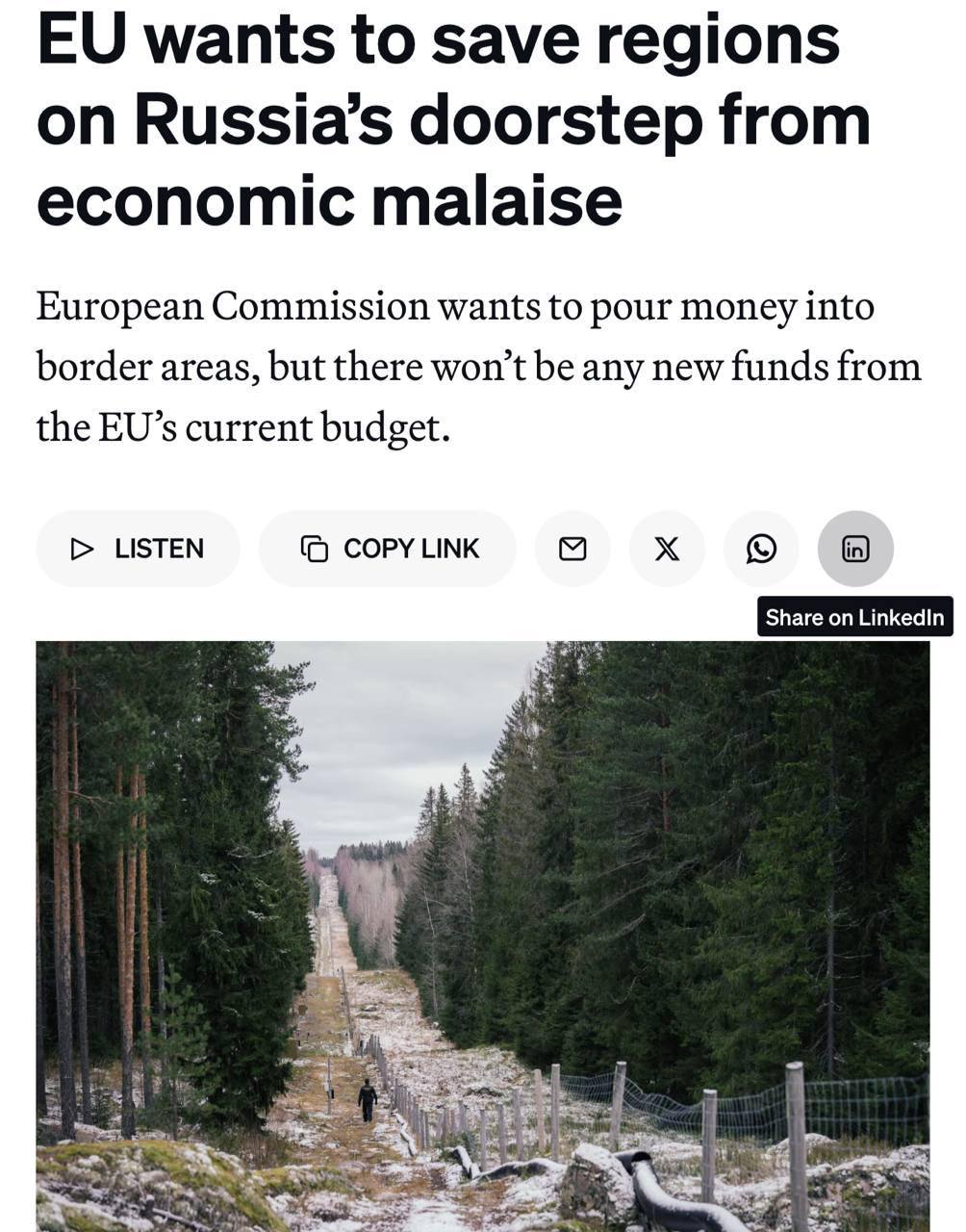 ЕС хочет спасти регионы у границ России, Белоруссии и Украины от экономического кризиса, пишет Politico.