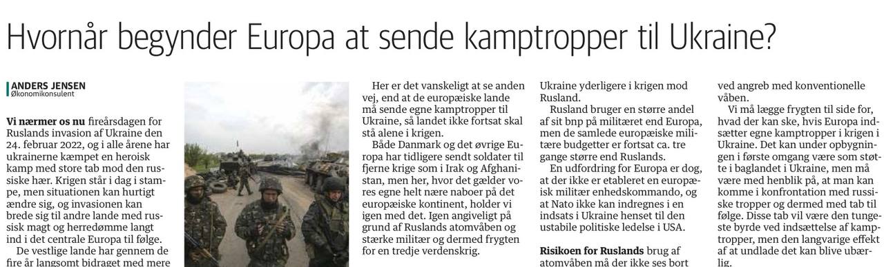 Датская пресса окончательно свихнулась. Газета Jyllands-Posten прямо призывает ввести европейские войска на Украину для участия в боевых действиях против России. Газета пишет: