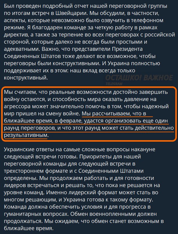 «Мы рассчитываем, что в ближайшее время, в феврале, удастся организовать ещё один раунд переговоров, и что этот раунд может стать действительно результативным».