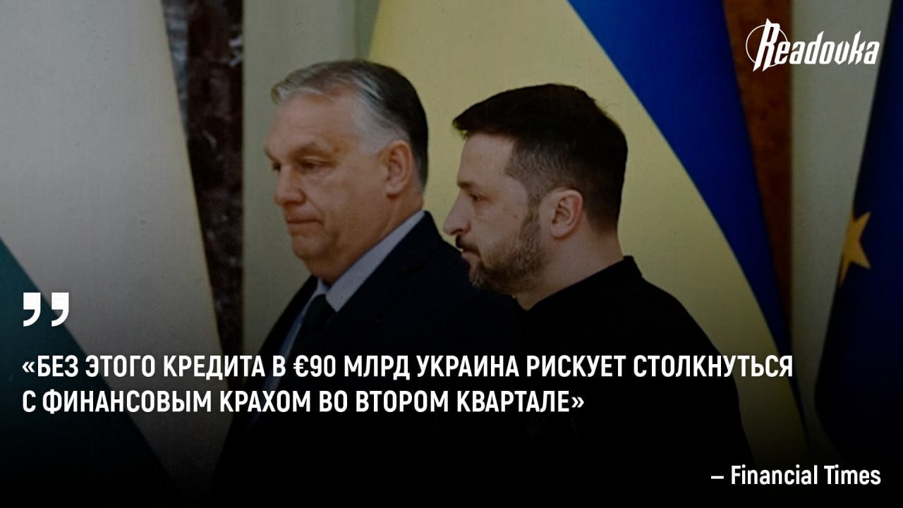 Евросоюз не смог согласовать очередной многомиллиардный заем Украине после того, как венгерский посол выступил против выпуска долговых обязательств под гарантии бюджета ЕС, сообщает со ссылкой на четыре источника FT. Для одобрения кредита в €90 млрд требуется единогласие всех 27 стран союза. Решение о выделении средств было согласовано еще в декабре 2025 года как «спасательный круг» для Киева, который в ближайшие месяцы может столкнуться с финансовым крахом. При этом Венгрия, Словакия и Чехия тогда отказались брать на себя обязательства по выплате процентов и погашению займа.